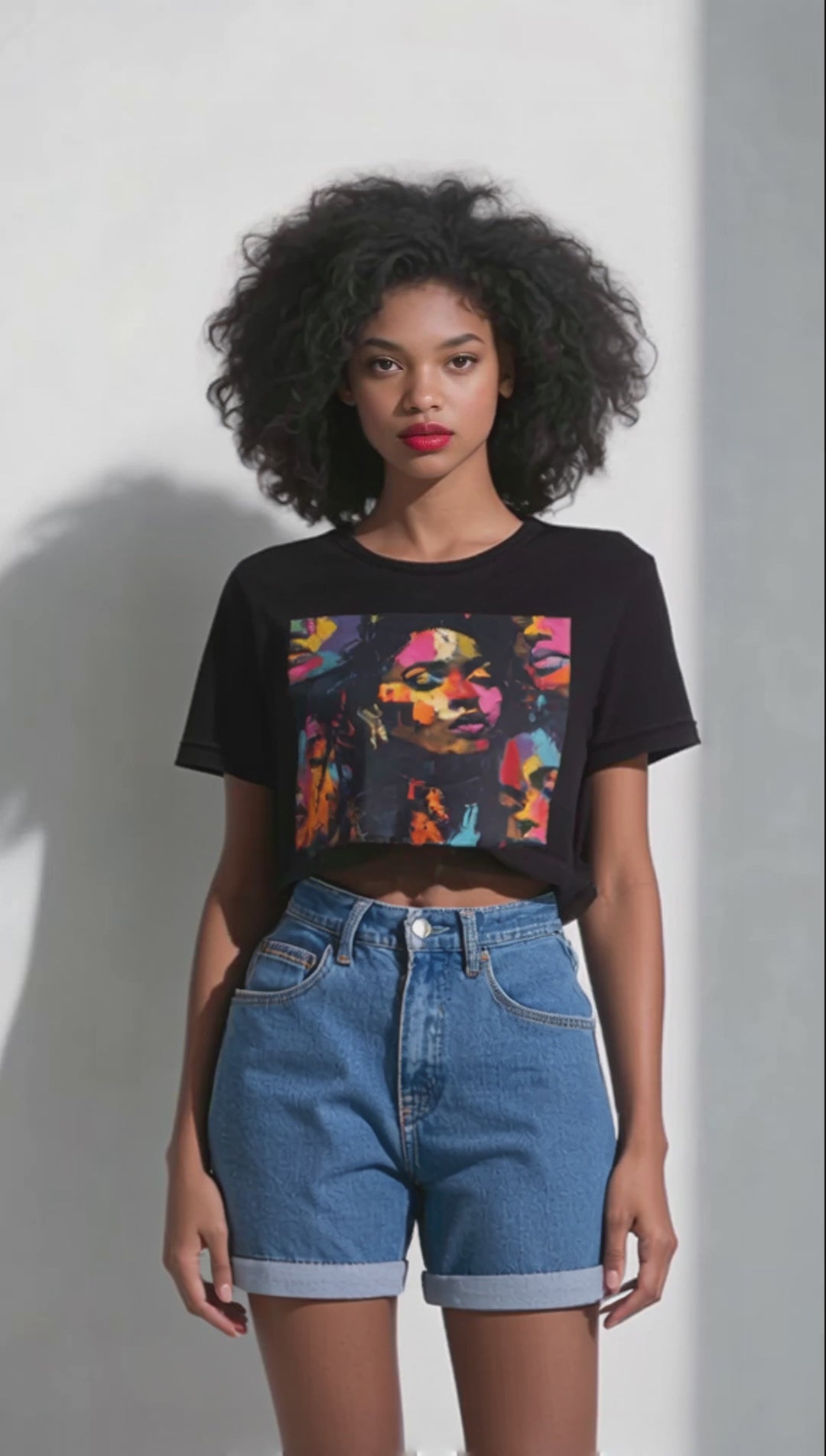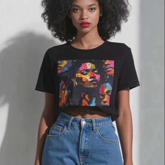Vibrant Essence Tee – Abstract Black Woman Art